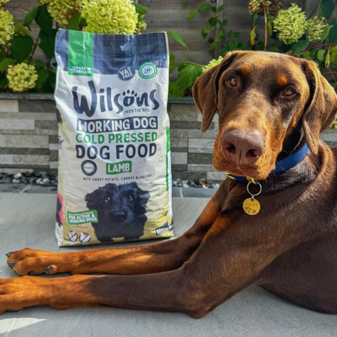Wilsons cold pressed recipes are available in 2kg and 10kg bags. Working Dog 15kg or 45kg, and free from VAT.