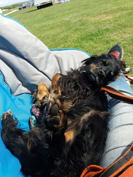 “I used to do disc dog with him but it’s so fast and furious, he’d be charging around and barking — but if you looked at his face, you could see he wasn’t having a good time. He just couldn’t deal with all the adrenaline and emotion. He was quite fearful because I think sometimes dogs don’t know the difference between being excited and being frightened.”