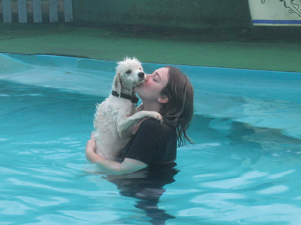 “During swimming lessons, the dogs wear flotation jackets, like life jackets, so they can’t sink, and you can go into the pool with them.