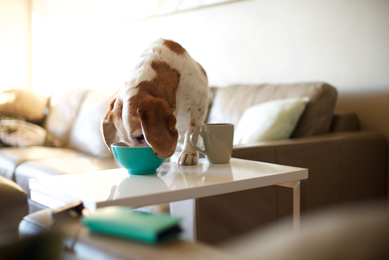 When there’s something really desirable on a work surface, dogs can display great ingenuity and an amazing reach! Teach your dog that food on tables or counters is out of bounds.