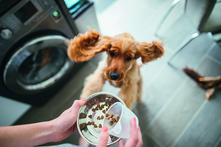 Avoid weight gain by measuring your dog’s daily food allowance and sticking to it.