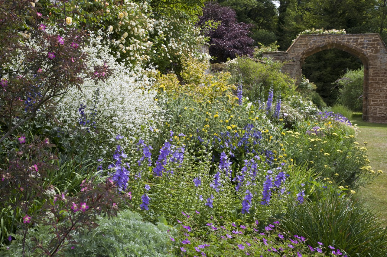 The grounds include a moat and a formal walled garden plus herbaceous borders, where soft romantic plantings and masses of roses are the highlights. Visitors can see a medieval great hall, vaulted passageways, magnificent plaster ceilings, fine panelling and fireplaces. It has been the location for television and films including Shakespeare in Love, Madness of King George, Wolf Hall, Three Men and a Little Lady, Jane Eyre, Father Brown and many more.