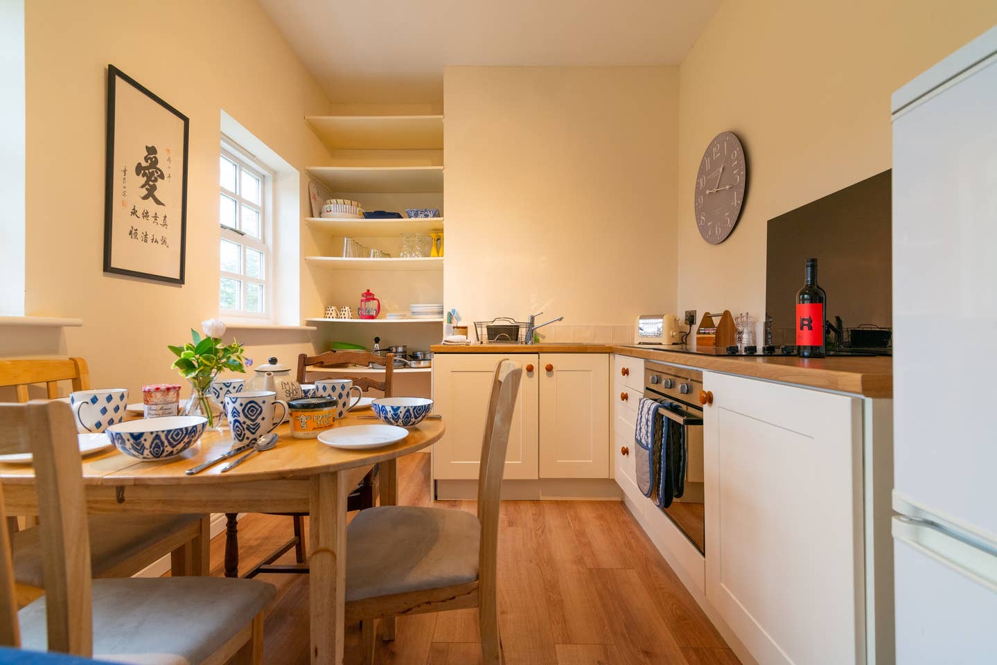 In the kitchen you'll find a clothes washing machine, oven, hob, microwave, kettle, toaster and all the usual kitchen paraphernalia. If you're coming for work there's wi-fi.