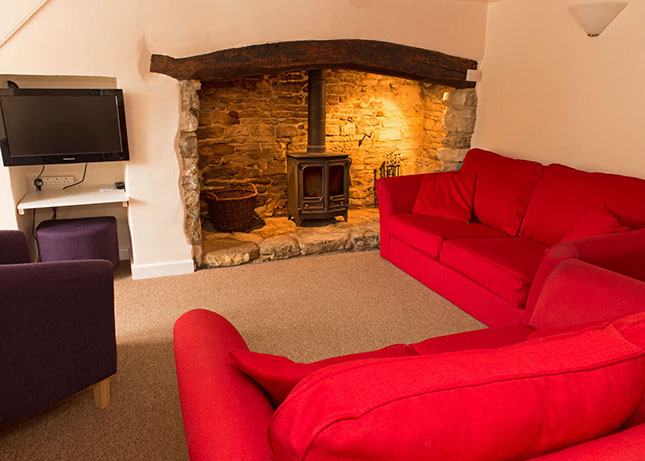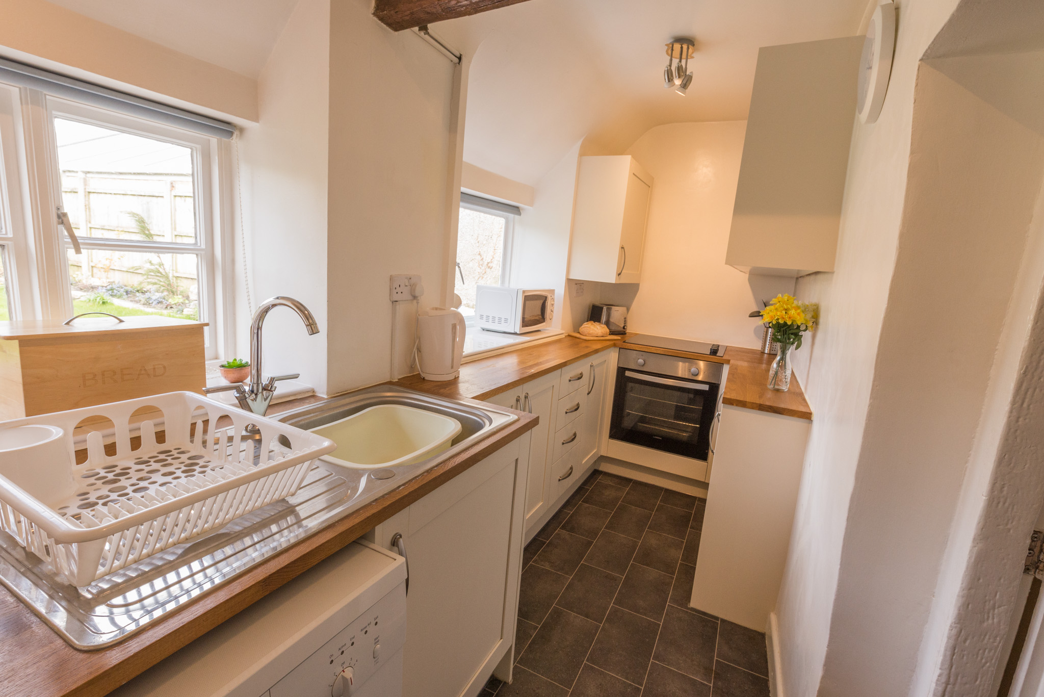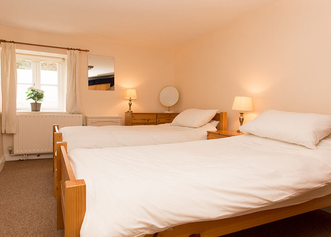 On the ground floor there is a cosy open plan sitting/dining room, which is pleasantly furnished, and has a very fine inglenook fireplace with a wood burning stove. Chaffeys has some low doorways, beams and twisty stairs which all add to the atmosphere of a typical older style cottage. Beyond the living room is a comprehensively equipped galley style kitchen and a door leading to the garden. There is a spacious ground floor bedroom which has twin beds and is next to the shower room which has a shower, basin and W.C.