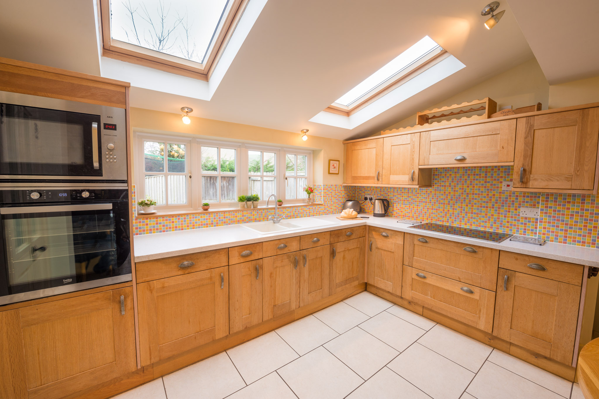 The front door opens into the hall, with stairs to the first floor and a door in to an attractive and cosy sitting room, with comfortable furniture and a feature fireplace with a wood burner. Doors lead into a spacious Kitchen/Diner which has a selection of units, electric fan oven with fitted microwave above, halogen hob and an extending dining table and chairs. This is a particularly light room with windows overlooking the rear garden and Velux windows giving ample natural light. Off the kitchen is a utility area with a fridge/freezer and washing machine and adjacent to the utility area is a bathroom with a bath with overhead shower, W.C. and wash hand basin. Off the kitchen is a lobby area, with ample storage space for coats and shoes and giving access to the rear garden.