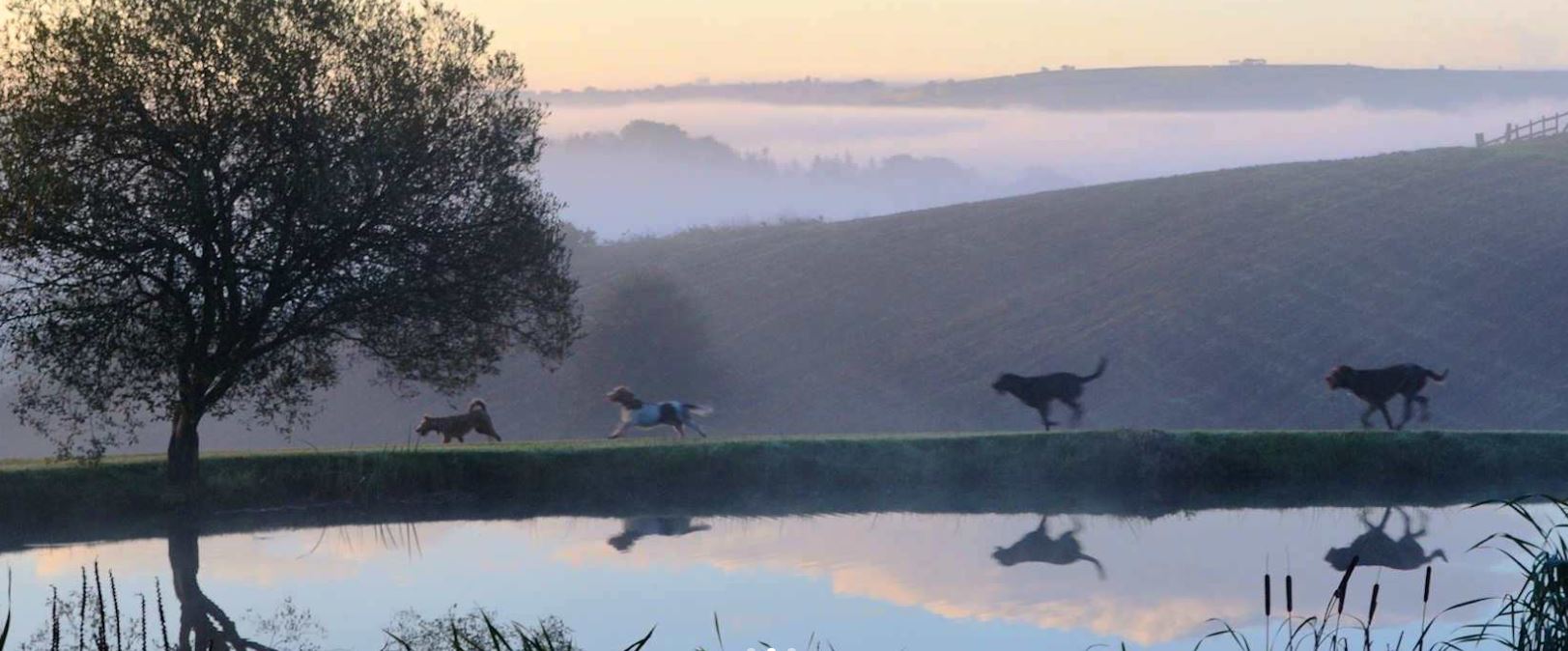 The two dog-friendly barns, each sleep six people, which can be hired separately or for one large group of 12. Both properties have direct access to a swimming lake (for adults and dogs!).  We have 27 acres with woodland walks on site and many other walks directly from the door to local dog friendly pubs.