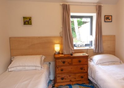 The garden is all at the front (part patio/gravel and part grassed) and has 6 feet hedging facing the cottage, 7 feet solid gate separating the cottage from the owners property and on the third side, fencing and paddock gate/small gate. Small dogs may be able to get through the gaps in the paddock gate but once the garden gate is closed the garden is fully secured for most sized dogs