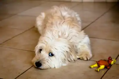 If your puppy chews household objects whilst he's home alone, it could be because he's anxious about something...