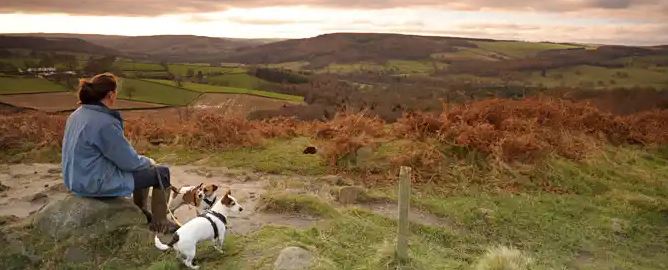 The national park is a great place for four-legged friends and offers some of the most amazing hilltop views in the UK. It is also one of the most popular walking destinations in this country and has something for everyone — from challenging treks and climbs up hills to gentle strolls in the countryside. Upon exploring the Peak District you will come across plenty of trails and routes that you can follow.