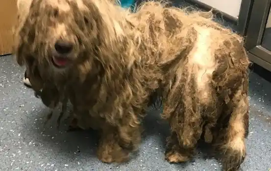 Frankie’s incredible transformation from dirty, matted dog to pampered pooch.