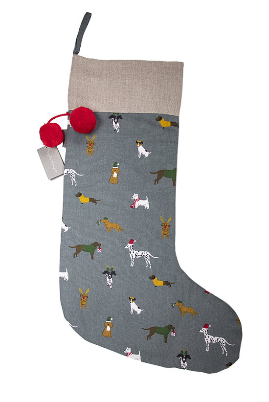 - Sophie Allport Christmas Dog Stocking – “Add a playful touch to your home this season with this Christmas stocking covered in some of our favourite festive dogs on a winter teal background. Perfect for dog owners and dog lovers, this lovely stocking will look lovely hung by your fireplace or underneath the Christmas tree.”