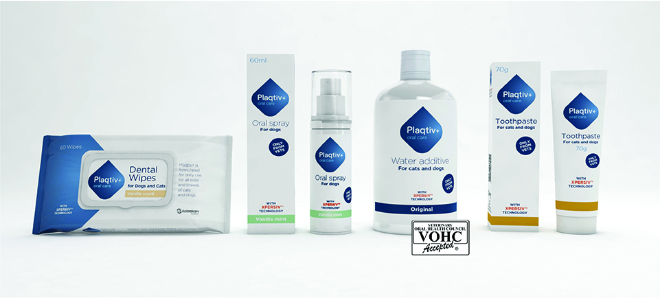 The Plaqtiv+ dental homecare range is available from your vet practice or online.