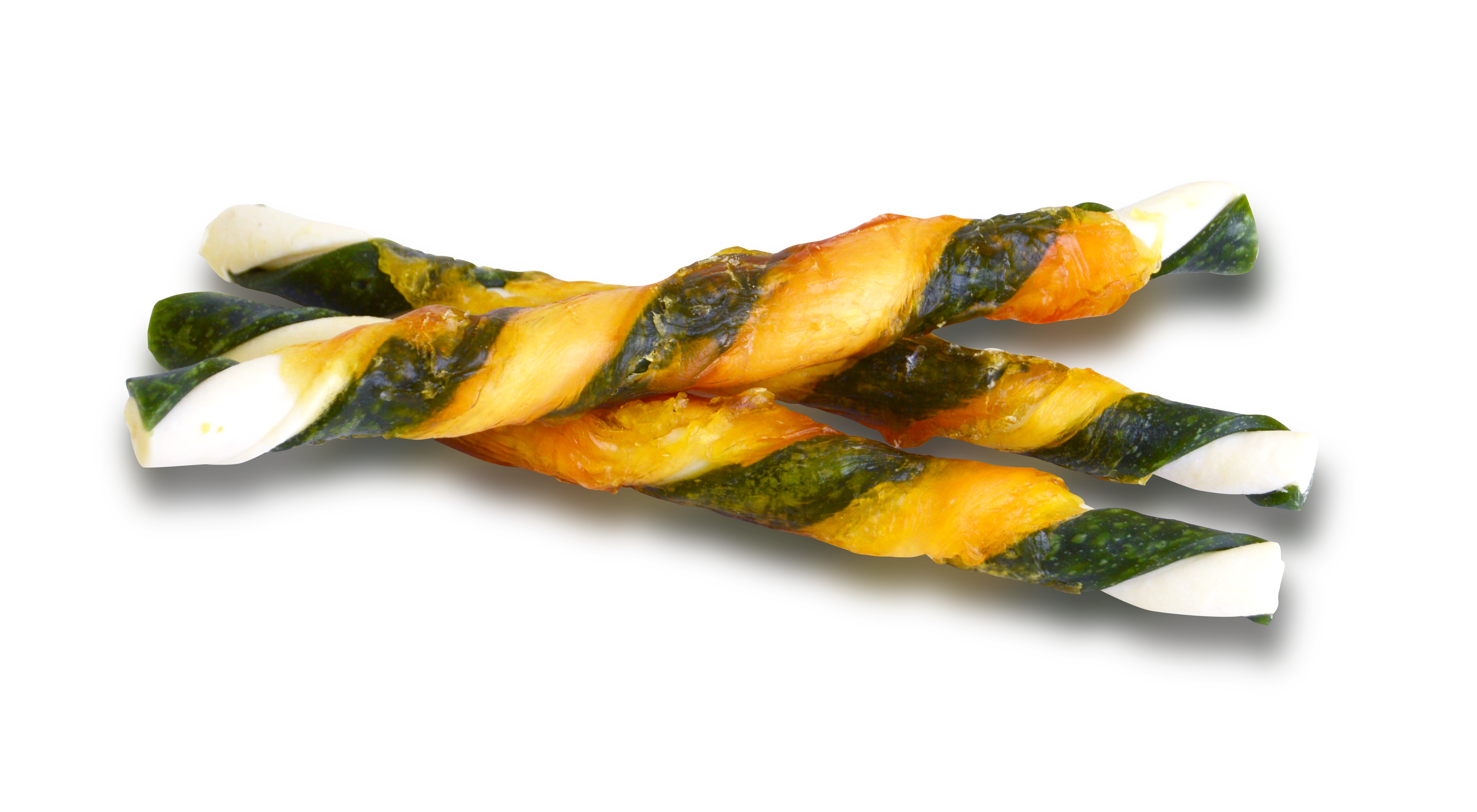 - Chicken Wrapped Twists — long, thin twists of scrumptiously chewy Better Bones wrapped in soft chicken breast.