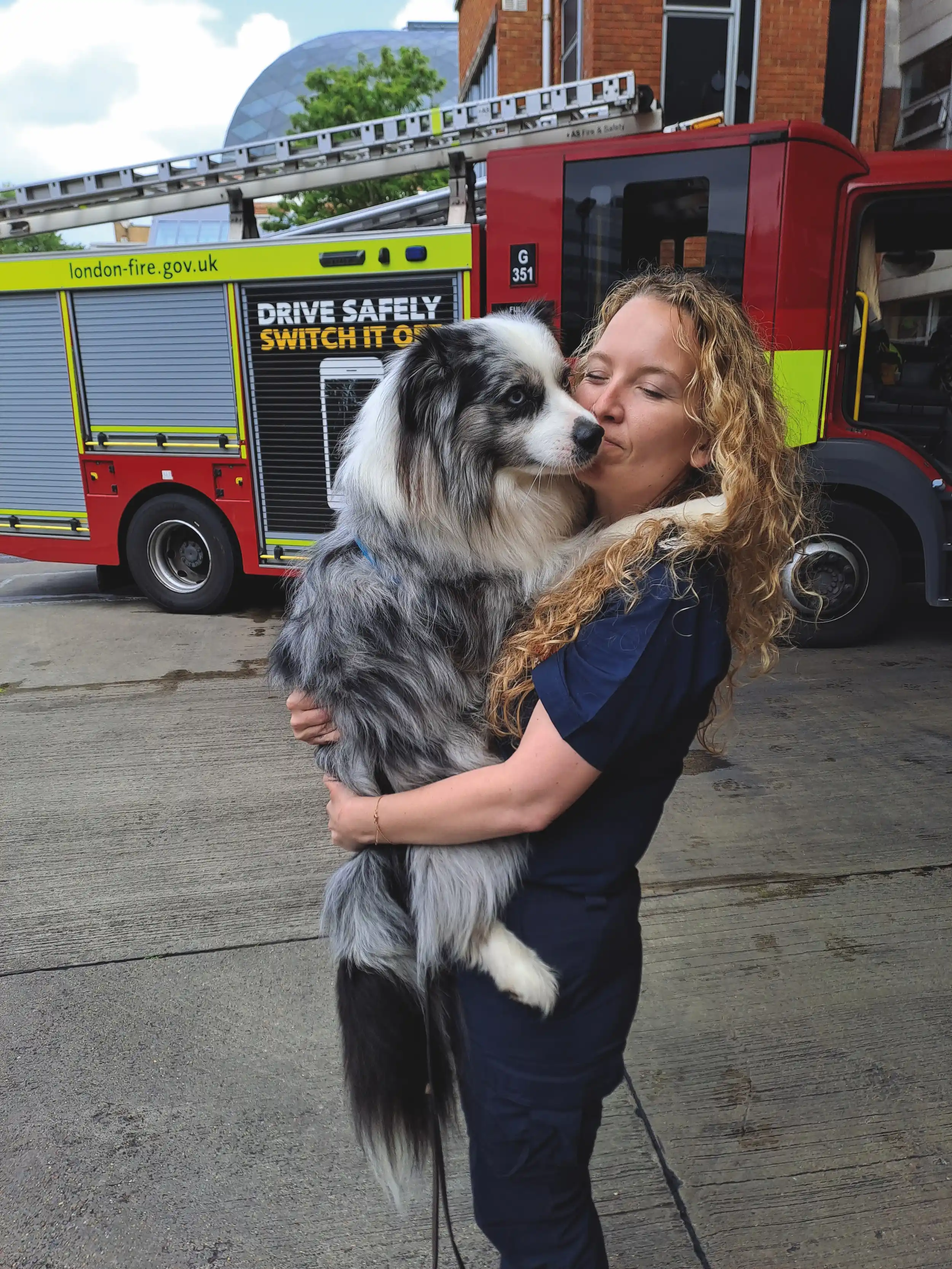 One minute, well-being dog Blue is off-duty, paddle-boarding down the River Thames with his handler, Lucy MacLeod, and the next, he’s supporting London firefighters through a distressing or challenging situation, or attending a fire station open day. The two-year-old miniature Australian Shepherd, whom Lucy describes as “an absolute love”, boasts all the qualities required for the role – and much more besides.