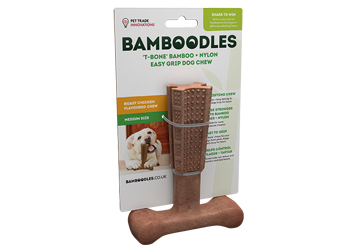Innovative dog chewBamboodles is the latest innovation in dog chews. These new T-shaped chew bones are infused with bamboo to make them durable for even the hardest of chewers, and their shape gives the dog the ability to hold the chew themselves. Available in two flavours and three sizes. Find out more at www.bamboodles.co.uk |