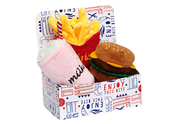 Meal deal toysGet your dog a meal deal bargain with our burger, fries, and milkshake combo toys! Made from plush textured fabric, the toys come in their own meal deal box — perfect for storage. Priced at only £14.95. Find out more at www.urbanpup.com; Instagram, Twitter, and Facebook. |