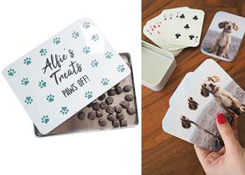 Playing cards and treat tinsTreat your dog and dog-loving friends with personalised gifts from UK-based gift company Proper Goose this Christmas. Tasty treat tins come in several depths, depending on how big an appetite your dog has, and will keep dry pet food fresh; prices start from £12.50. Or why not treat a friend to these playing cards adorned with an image of their pet? Each card set comes with a matching tin to keep them in; priced at £22. All delivery to the UK is free, with no minimum spend. Find out more at www.propergoose.com |