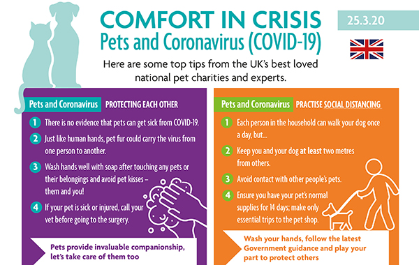 The group has produced a series of colourful graphics giving tips and advice on how to look after your pets while you protect yourself, how to care for pets while social distancing or in self-isolation and how to help others look after their animals. The group are urging pet-owners to share the easy to understand graphics across their networks. These will be also posted on the organisations’ websites - so owners get good, clear advice.
