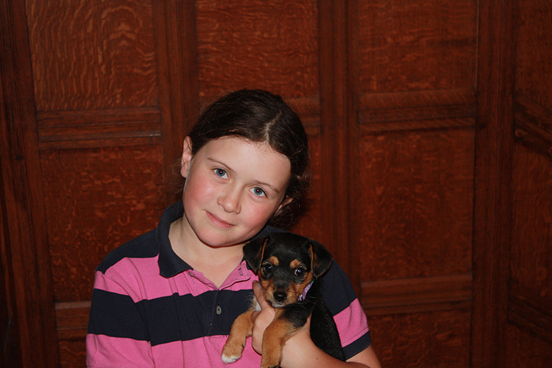 “I had an older terrier who was about 13, and my husband bought me a little black and tan Jack Russell, Crumpet, for my birthday in July. My two little girls — seven and eight at the time — were home during the summer holidays; we had a few weeks, and we had lots of fun with her. She was just lovely.”