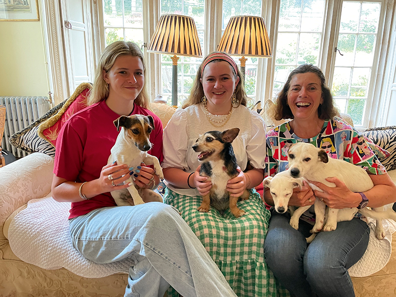 Image: Reunited — 18-year-old Elektra with Layla, 19-year-old Tallulah with Crumpet, and Sarah with Fizzy and Gnasher.