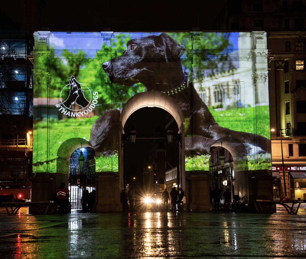 buildings. Marble Arch, the Tower of London and Senate House’s famous facades were adorned with pooch projections and messages of grrrrrrrrrratitude.