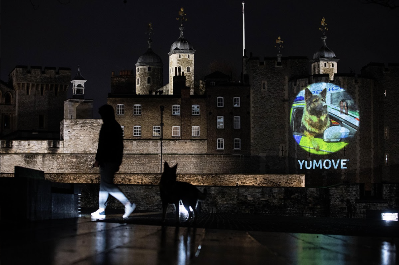 YuMOVE’s pooch projections are running as part of the brands #ThankYouDogs campaign. The campaign, that supports the incredible efforts of animal charity StreetVet, encourages dog owners to share their tall, short and shaggy dog stories across Facebook or Instagram using #ThankYouDogs. For every story posted, YuMOVE will donate £1 to the charity.