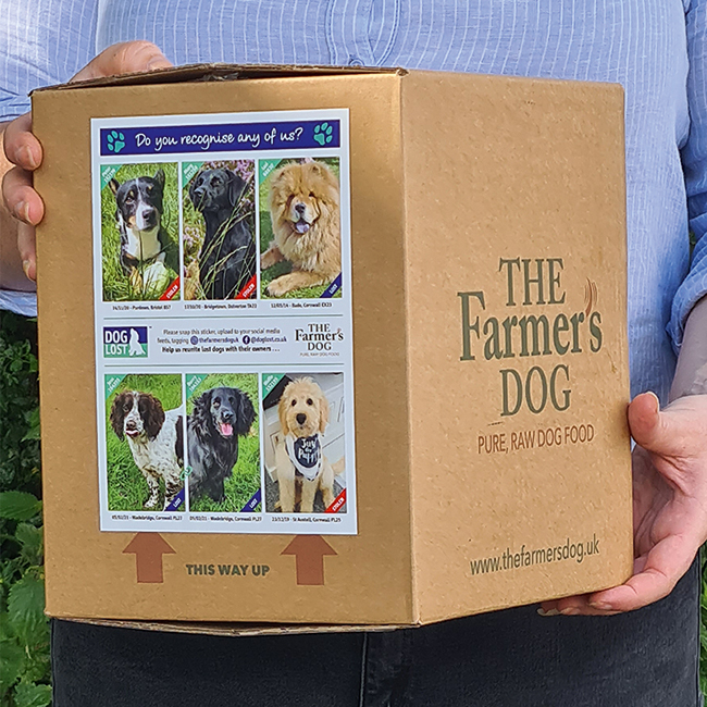 Raw food company The Farmer’s Dog has teamed up with DogLost to feature six lost or stolen pets on its mail order boxes.