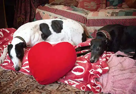 "Whilst in our care, Mac showed himself to be a true gentleman with typically laid-back and docile Greyhound characteristics. Although not unusual for a Greyhound, Mac was exceptionally tall, but what made him most special of all was the heart shaped patch on his side. As well as being friendly to all people he met, Mac was also a sociable boy amongst his kennel mates. We're delighted he's now having the most romantic of Valentine's Days alongside his special someone and his new, loving family."