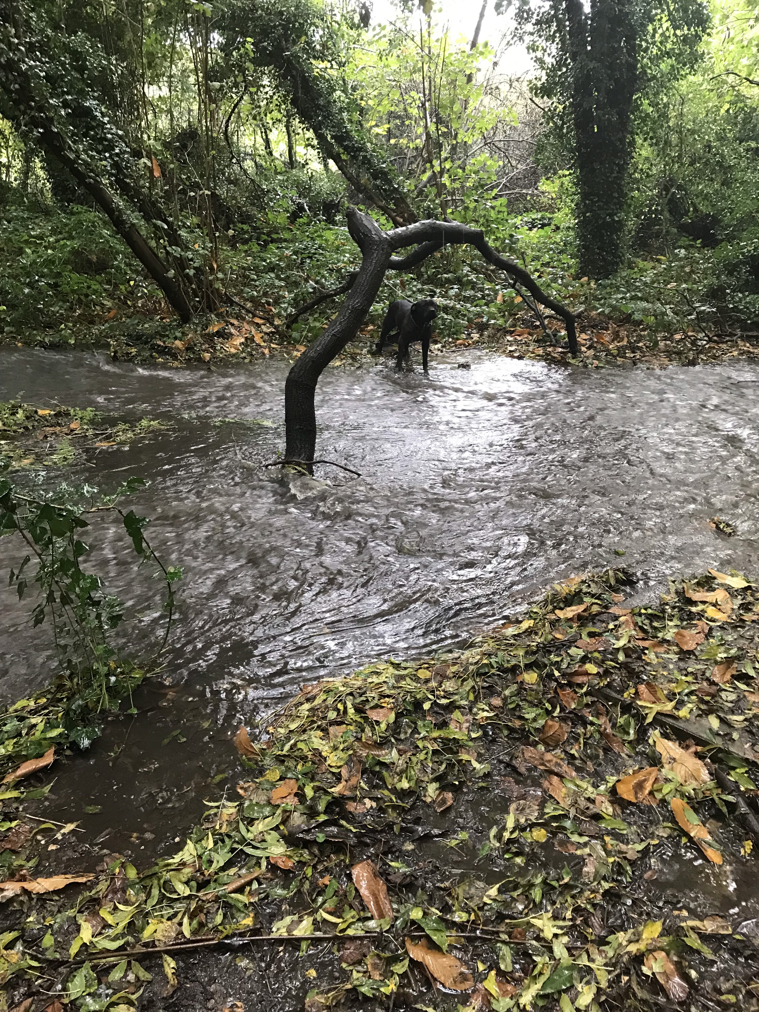 Torrential rain had formed a river around her on the footpath which was approximately 1.5ft deep.
