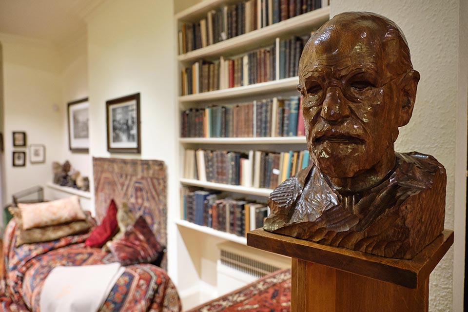 Freud’s former home, now the Freud Museum, with the psychoanalyst’s couch in the background.