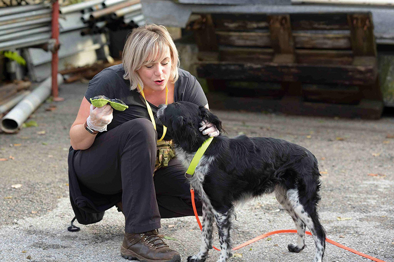 All Louise’s dogs are rescues, and she usually asks the shelter for the dogs who would not make ‘good’ pets. This is to avoid taking a dog who would fit well into pet life; conservation dogs need drive and determination, qualities which can cause issues in a family pet. Louise’s dogs also need to adapt to a fairly unusual way of life. Whereas many dogs like routine, a detection dog’s life can be unpredictable. They may have to wake up in the middle of the night and perform searches in the dark. “They have to get used to travelling a lot, going into different environments and places. Our dogs have to be happy with spontaneity,” confirmed Louise.