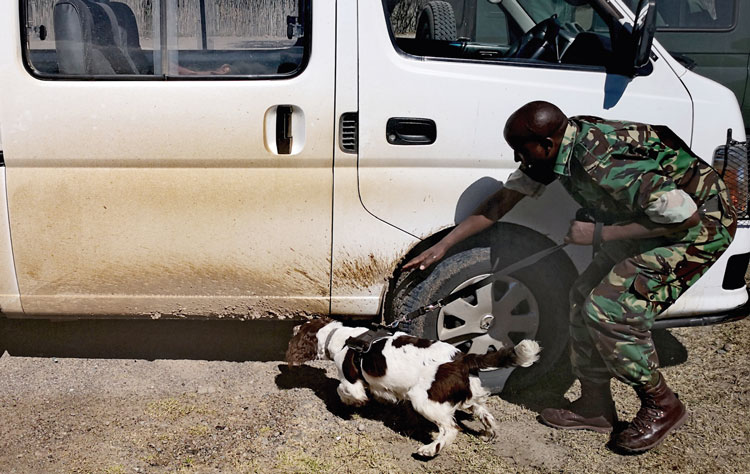 “I thought a Springer Spaniel from a working line would be perfect to train for this job, because in some ways a vehicle checkpoint job will be quite mundane, but I know that Drum will never, ever get bored with what he does. He absolutely loves his job, and is incredibly enthusiastic — all he wants to do is work. He is also quite small, and can get into areas that other breeds we use for anti-poaching work, such as the Malinois, would not be able to access.”