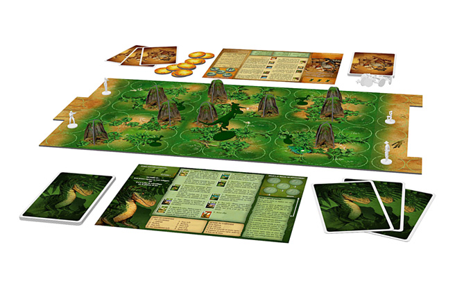 It’s scientists versus dinos in this two-player showdown from all-Bruno designer team Cathala and Faidutti. The mother raptor must protect her babies from capture by the scientists, while the scientists are pretty keen not to end up as the family’s next meal. The players reveal their cards at the same time, hoping to get the chance to take their actions while their opponent is forced to only use that card’s special ability. The dino minis only add to the fun chase.
