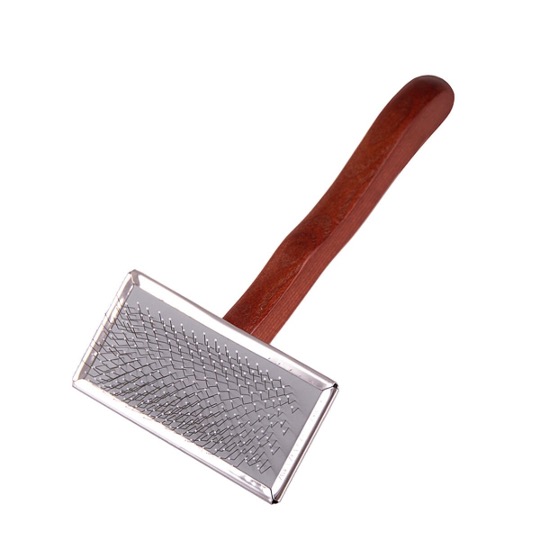 Pros: The curved pins effortlessly glide through medium to long coats without pulling, making detangling a breeze. Its ergonomic handle reduces wrist strain, making it suitable for longer grooming sessions. It's effective at removing knots with minimal discomfort for the dog.