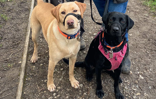 “It’s like they just know,” said Lesley. “They’re very intuitive and well behaved for their age — quieter than you would expect for typical one-year-old Labradors. They don’t pull on their leads and try to help us out if there’s tricky terrain, such as a slope, hill, or steps. Storm knows when I’ve got a headache and manoeuvres himself behind me so I can rest my head on him.