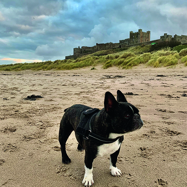 Eight-year-old French Bulldog Dora loves nothing better than a visit to Bamburgh.